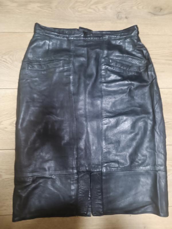 Юбка из натуральной кожи с карманами есть разрезы по переду и сзади 13 см длина 62 см нот 36 нос 50 сзади молния 20 см подклад из вискозы