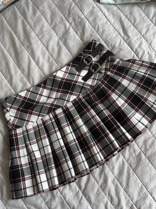 Коротка спідниця в клітинку. Виміри: талія 33,5см, довжина 28,5см.