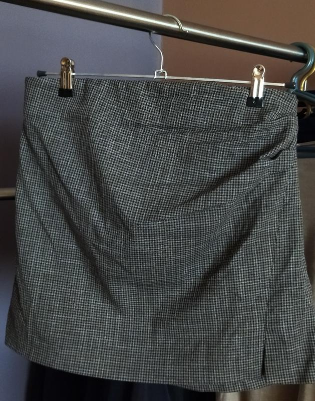 Юбка женская в мелкую клетку. Форма: трапеция. Застежка молния сбоку. Размер М. Длина 41 см.