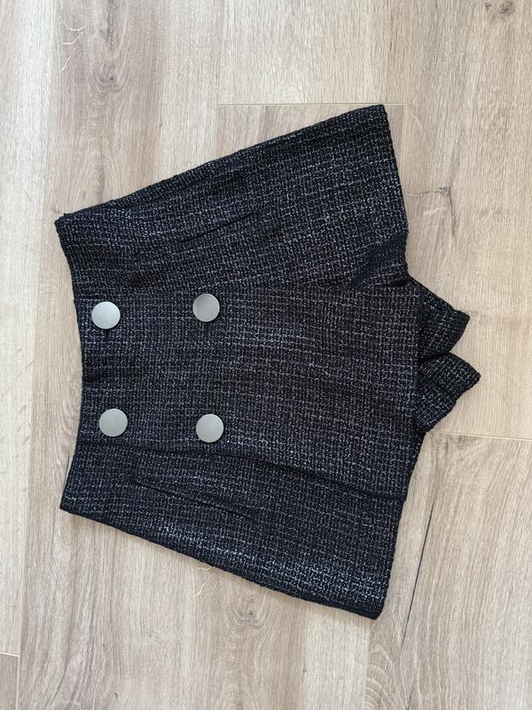 Міні спідниця-шорти бренду Zara, в дуже хорошому стані, без нюансів. Розмір XS, склад див етикетку. Твідова тканина з люрексоврю ниткою.