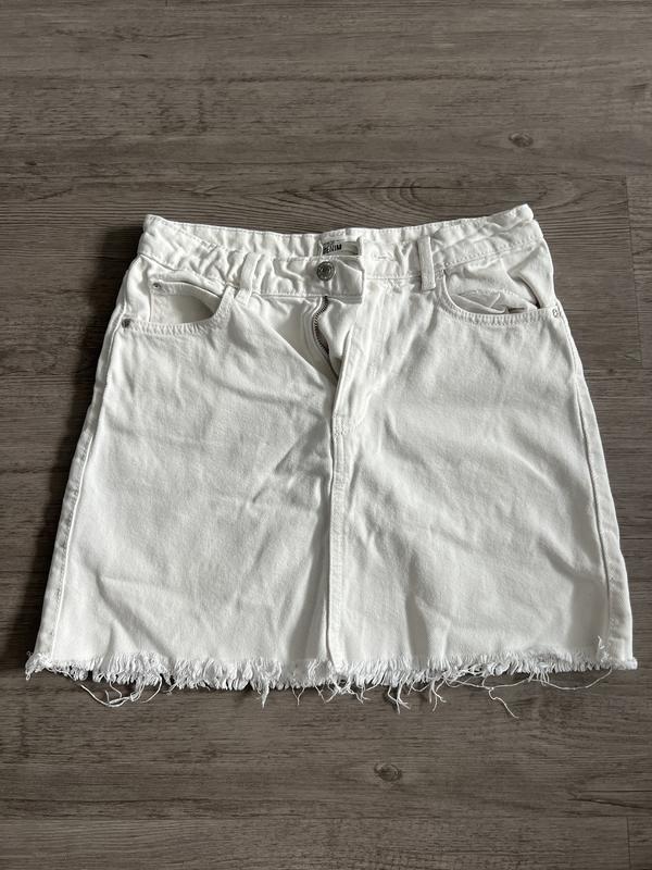 Белая джинсовая юбка, плотный качественный джинс, размер с. Хорошее состояние. Возможно сбросить доп фото, замеры