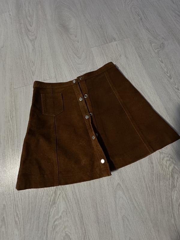 Продам міні- спідницю в трендовому рижому кольорі .38 см довжина . пот 35- 36 см На розмір ХС- С Натуральна замша на підкладці.