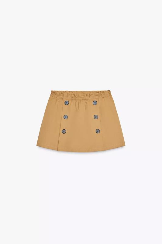 Спідниця-шорти із середньою посадкою та еластичною талією. Бічні кишені, приховані в швах, і декоративні кишені з обшивкою ззаду. Контрастні ґудзики спереду. ВЕРБЛЮЖИЙ | 1255/542/756