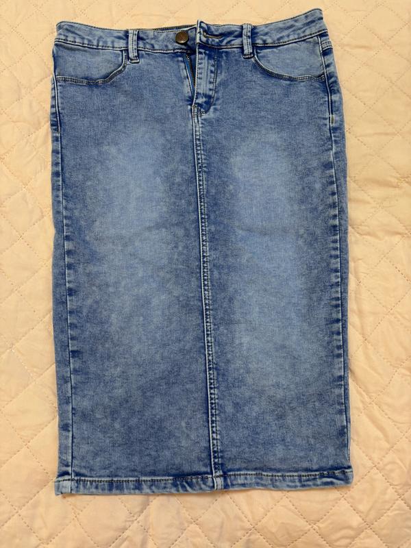 Джинсова жіноча спідниця Заміри: НОТ 36 см НОБ 38( тягнеться до 44) Довжина 60 см