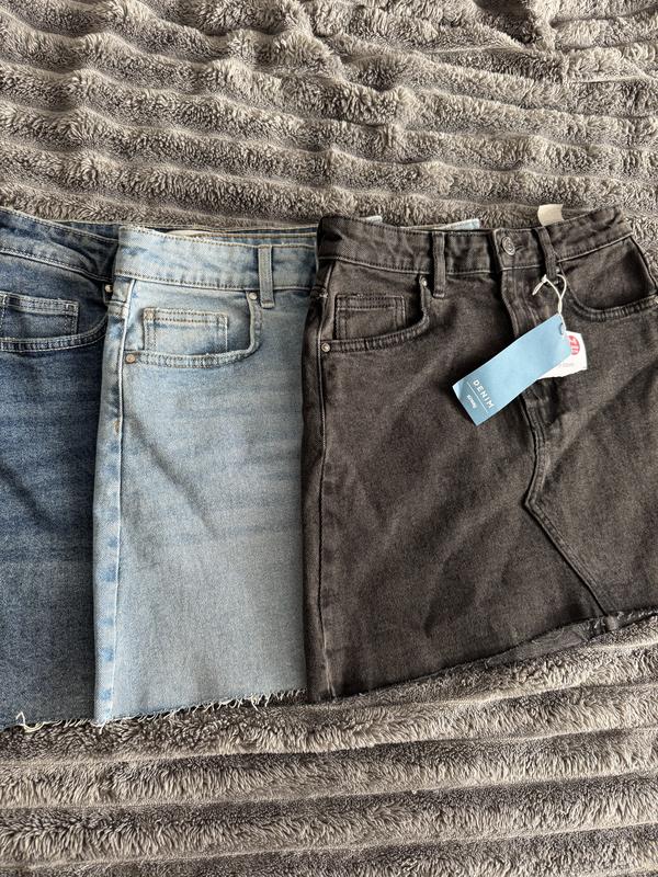 Нові джинсові міні-спідниці з біркою, бренд Sinsay, стан новий, в наявності в трьох кольорах, розмір 34, підійде на XS-S