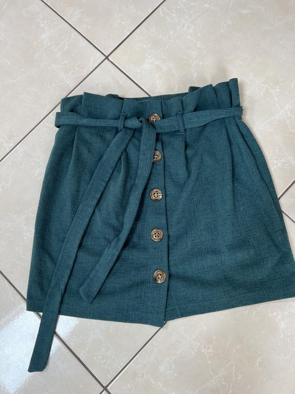 Юбка мини изумрудная с пясом и пуговицами, талия завышенная, хорошо тянется, размер 8. Стан замечательный