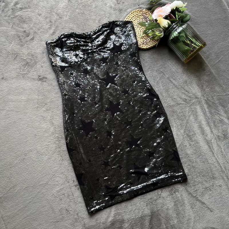 Vero Moda p. M Сукня в новому стані чорного кольору в паєтках, в середині силіконова стрічка, є петельки для бретелей, добре тягнеться Довжина 75 см Пог 38 см Пот 35 см Поб 45