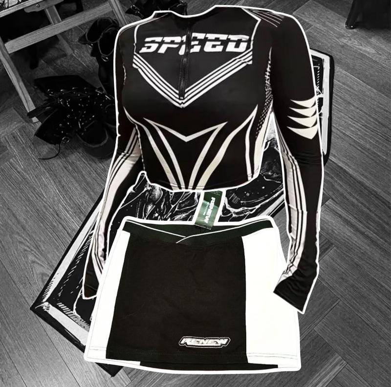 Чудова спідниця у японському кібер стилі , має резинку та сама тканина чудово тягнеться , бірка є . Розмір : Довжина : 32 см Ширина напів обʼєм талії (занижена ) :34-36 см Ширина напів обʼєм стегон :40-45 см