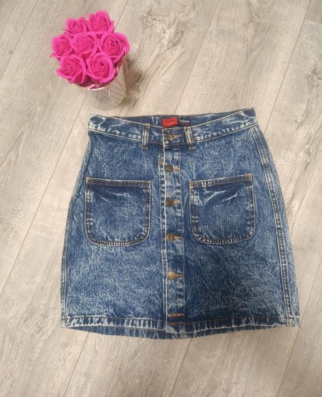Джинсовая юбка синего цвета с карманами спереди. Размер 25 Замеры: длина 46 см, ширина в талии 35 см, ширина в бедрах 46 см