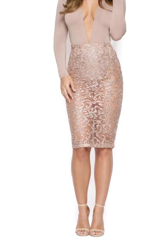 Сексуальна напівпрозора спідниця олівець з завищеною талією на блискавці ззаду. Спідниця виконана з сітчастої тканини з розсипом блискіток, що створює незабутнє враження розкоші. Будь у тренді! Розмір: 12 заміри (напівобхват пояси – 37 см, напівобхват стегон-49см, довжина виробу – 71 см) Плюс тканина тягнеться