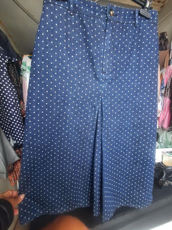 Юбка джинсовая в горох прямая по переду 3 защелка э кармана ) Стан новой вещи пот 50 пос 64 длина 80