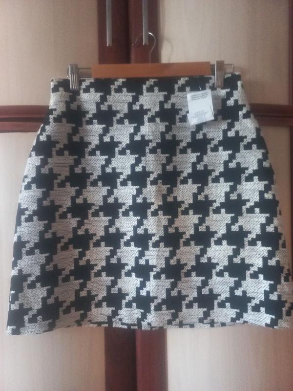 Теплая юбка, принт гусиная лапка. Держит форму. Размер 40. ПОТ 37б ПОБ 50, длина 49
