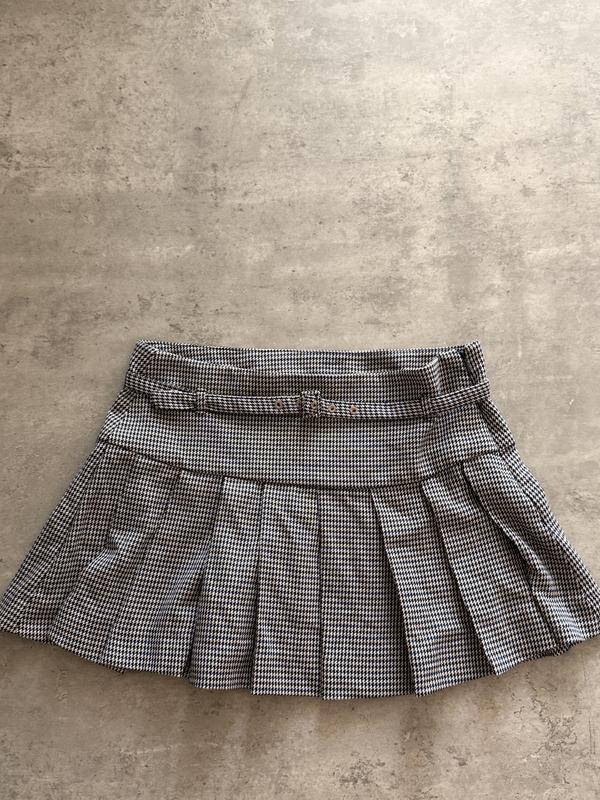 Дуже стильна спідничка міні в складку на середній посадці. Єдиний нюанс це трішки розпорений шов внизу замочка, який легко зашивається