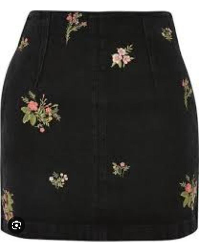 Джинсовая мини юбка с цветочной вышивкой.Длина 37см.Пот34см.Поб 46см
