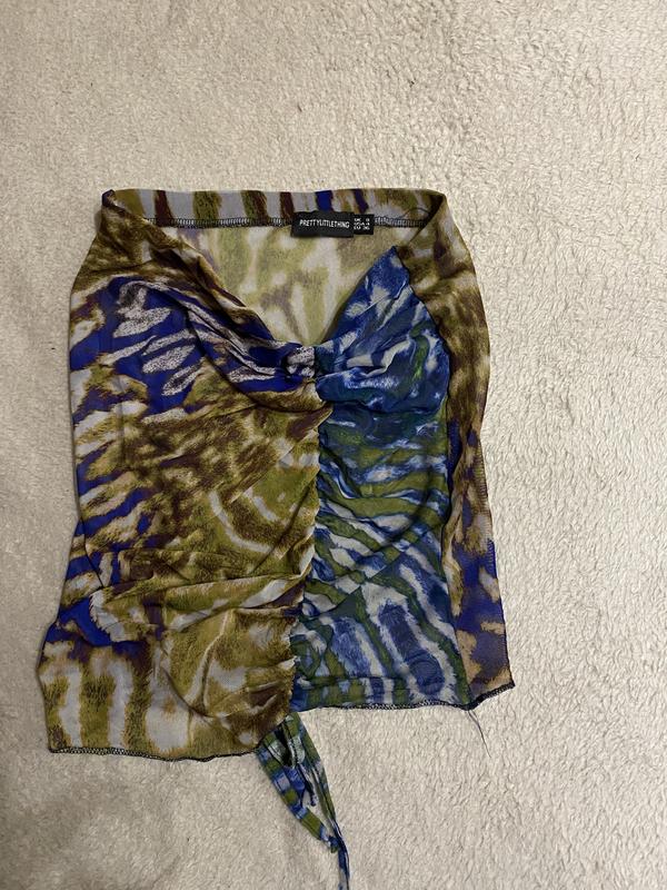 спідниця міні по фігурі з присборкою та зав’язками напівпрозора капронова тай дай y2k prettylittlething