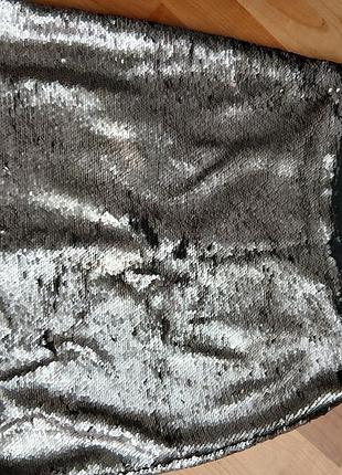 Очень эффектная мини-юбка с метализированной пальеткой. Плотная,деликатный блеск,пайетка вращается и меняет свой цвет от стального до чёрного. Подкладка плотная,приятная вискоза,роскошный ЛУК с джемпером любого цвета,водолазы. ПОТ-40 ПОБ-50 Длина 47 маркировка 40 (европейская)