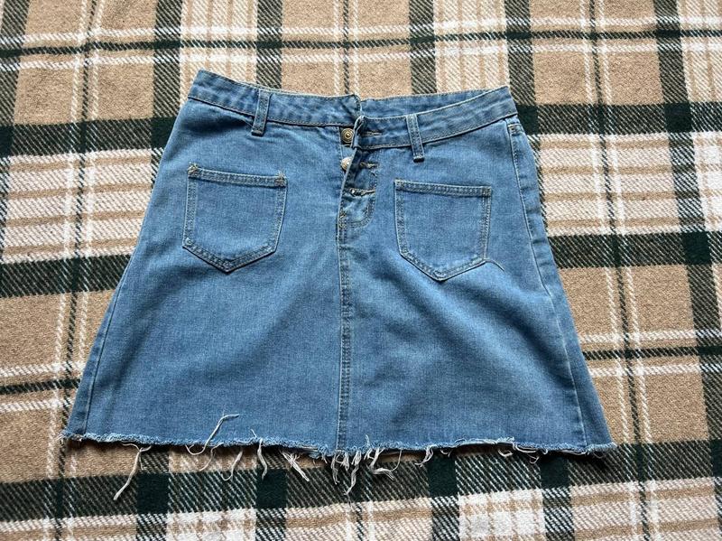 Джинсовая юбка с нестандартным асимметричным дизайном передней части, где пуговицы Размер М