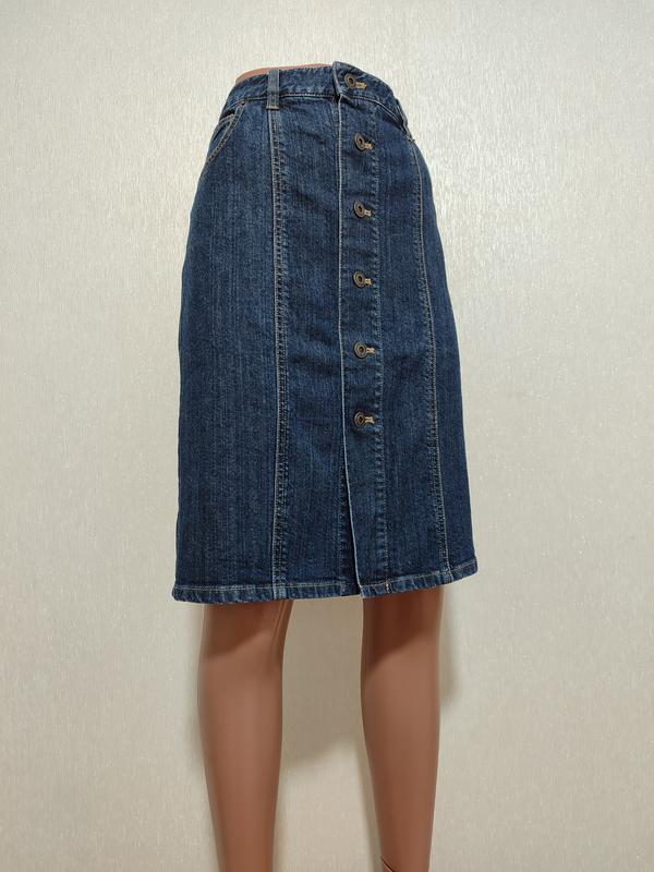 Секонд высокого класса, стильные и качественные вещи известных брендов. Фирменная джинсовая юбка в идеале, на пуговицах, удобные карманы, плотный джинсы, слегка стрейч. Заміри на фото.