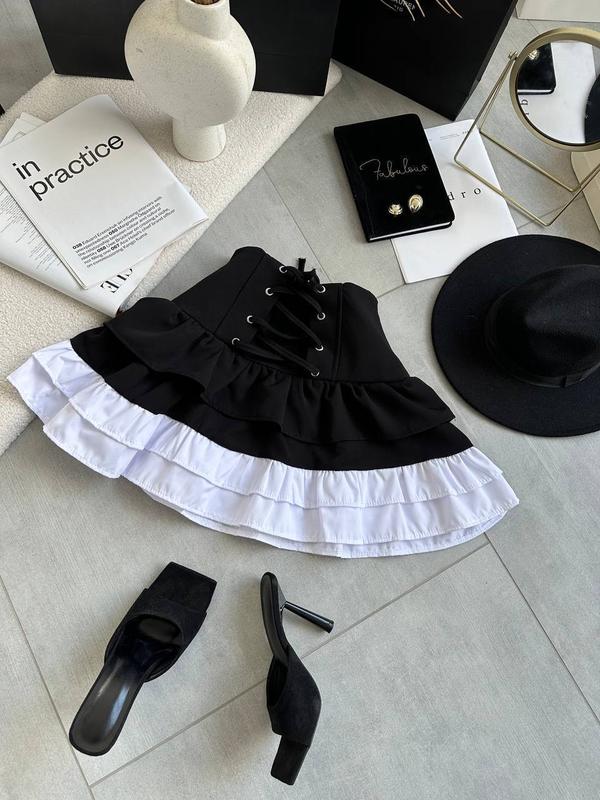 Новинка🤩 Фото реал❤️🖤 Спідниця Тканина:костюмка + коттон Розміри: 42-44, 46-48 Кольори: чорний Стильна спідниця яка не залишить тебе без уваги❤️