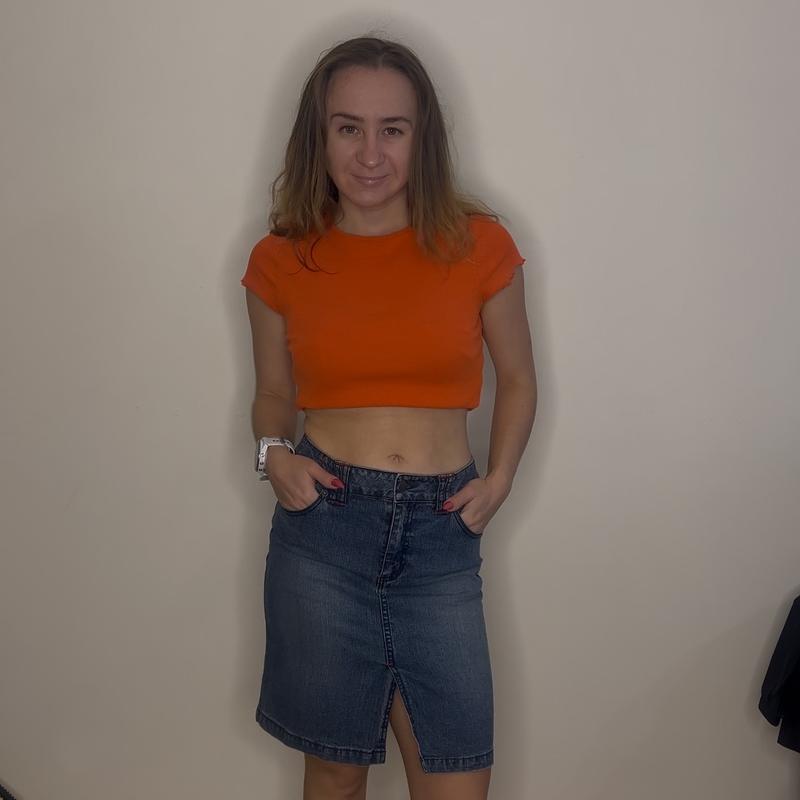 Мені ця спідничка зверху велика, тобто може бути для животику) Детальні фото чи заміри можу надіслати) маю багато речей, тому дивіться інші оголошення) У Франківську можу передати) Мій ріст - 153 см Бедра - 91 см Талія 66 см