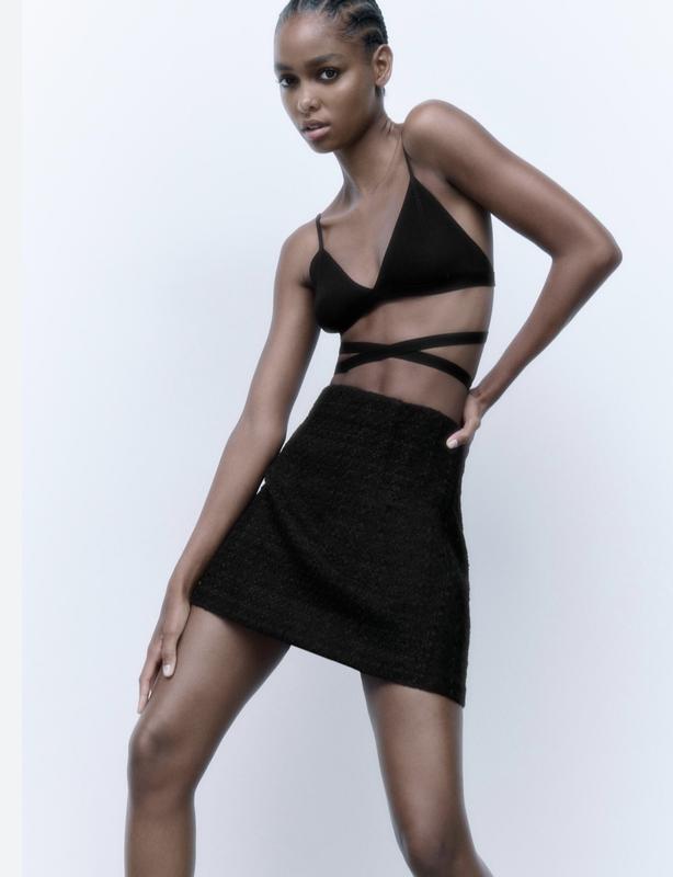 🌿черная мини юбка твид от Zara красиво держит форму Размер:S Замеры:ПОТ 34 см, ПОБ 48 см, длина 36