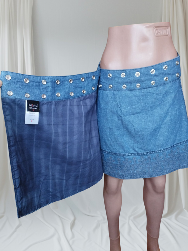 Новая двухсторонняя джинсовая юбка из натурального хлопка. Застёгивается на кнопки. Сделано в Индии. Замеры на фото.