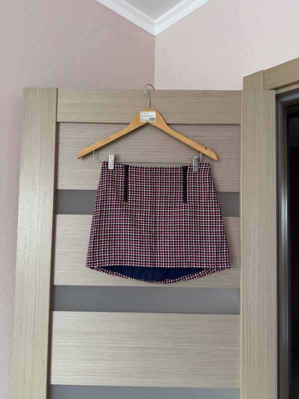 Міні-спідниця від бренду Topshop, дозаду трохи подовжена, на двух блискавках спереду. Виглядає стильно, стан ідеальний, одягалась декілька разів.