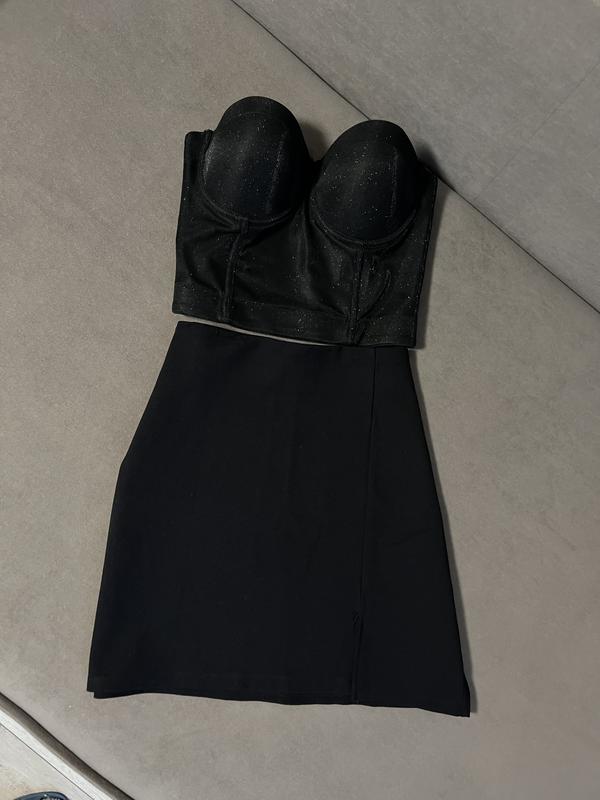 Чорна класична міні-спідниця з маленьким розрізом збоку. Розмір М Лягає по фігурі, матеріал тягнеться Стан- ідеальний