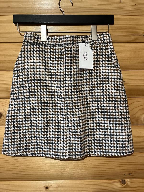 Нова спідничка з біркою, тепла і щільна Принт гусяча лапка Розмір вказаний S, але на XS теж підійде, дивіться по замірам Талія 32 Стегна 40-42 Довжина 44 Внизу 49