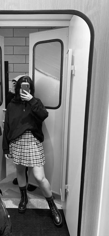 Черная мини-юбка в клетку со сложными складками от cropp. Есть молния, очень приятный материал