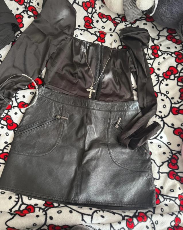 Спідничка шкіро замінник , бренд ZARA чорного кольору. Кишені на замочках які не погоджені і гарно відкриваються .