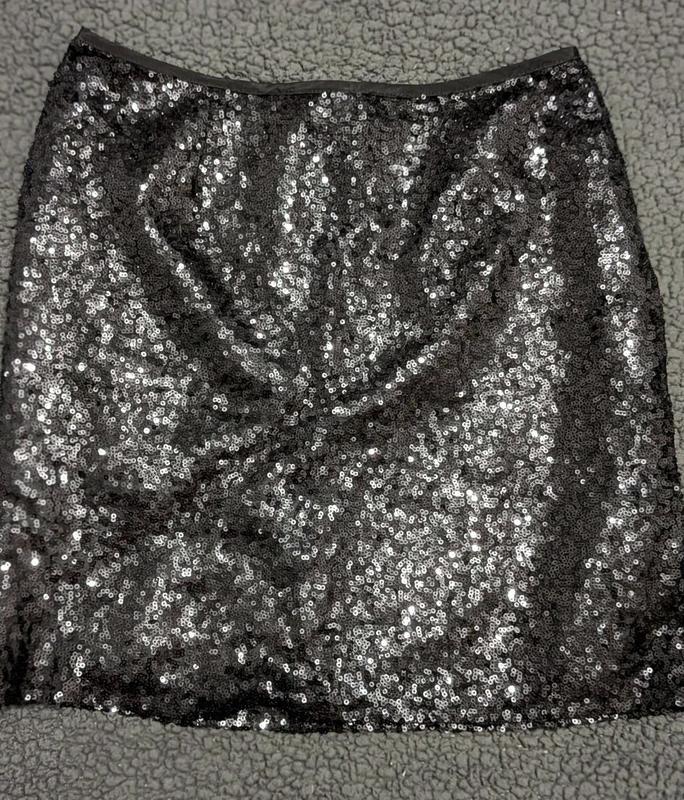 Черная короткая юбка в пайетке. Сзади на молнии, на бирке указан размер 38, одета на 36 на бедрах.