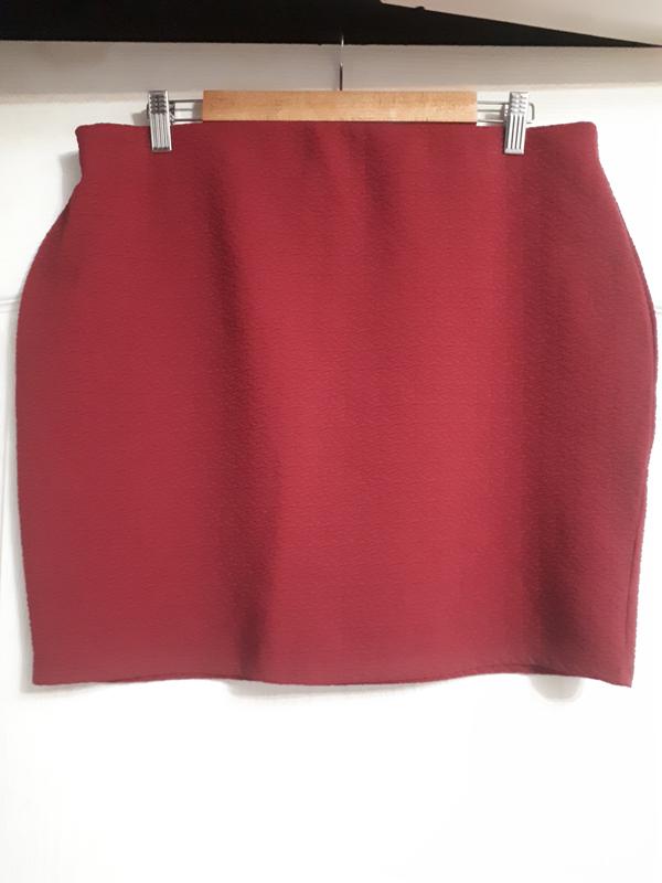 В идеальном состоянии. Но, наверное, лучше сядет на 18 размер. Цвет бордовый, не такой как на фото. Пояс 45 Стегна 56 см Длина 45 см При покупке от двух вещей цены договорные.