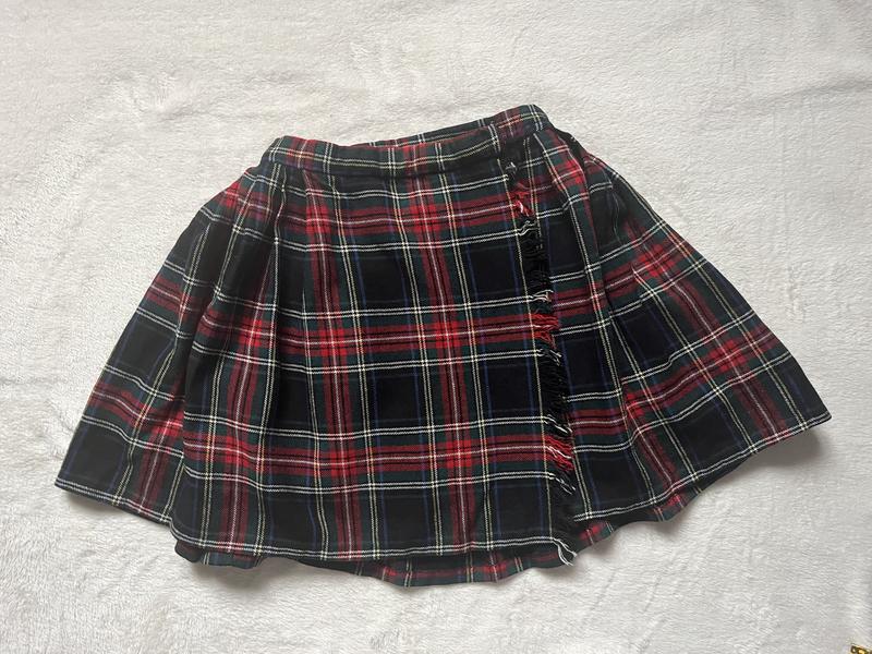 Тепла міні спідниця на запах, скоріше за все хенд мейд, бо ніяких бірок немає. По тканині не впевнена, але на дотик тепла і мʼяка, не колеться. По боках є складочки. Пот 30 см, довжина 38 см. Стан ідеальний