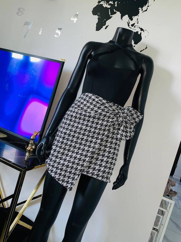 Мини-юбка pronto moda k1, принт "гусиная лапка" черно-белая, с бантом, размер m