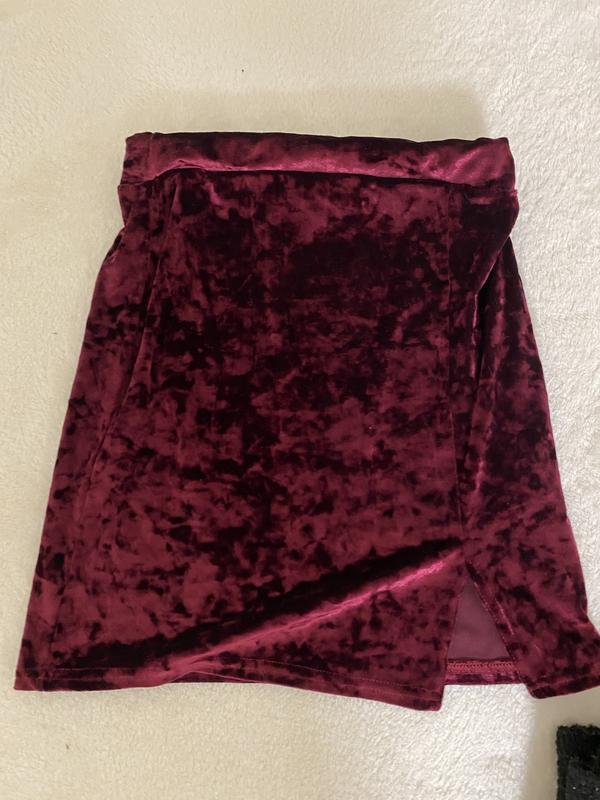 Жіноча велюрова юбка Стан 10/10 дефектів немає Колір темно червоний/ бордовий Розмір С Невеликий розріз на нозі На резинці