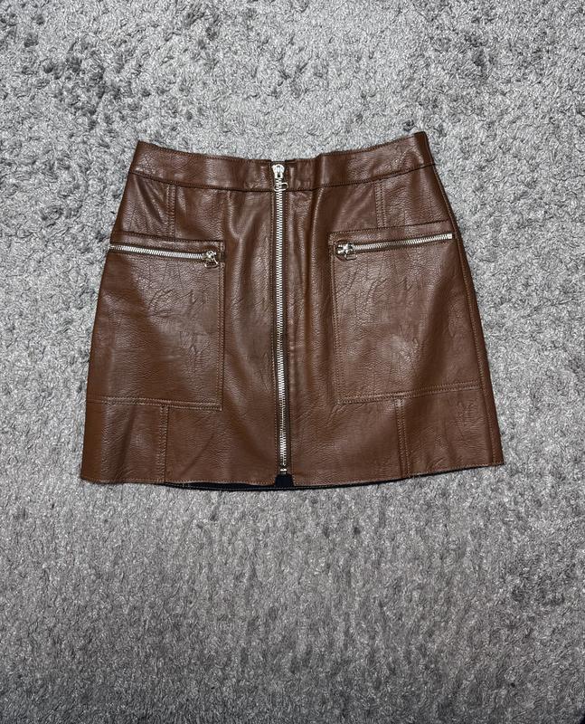 Дівчатка до вашої уваги дуже стильна річ Спідниця гарного фасону із замінника під шкіру Виглядає дуже солідно, матеріал не дешевить вигляду Розмір повномірний С, або стандартний М Заміри: Довжина 40,5с талія 37 см, бедра 49-50 см