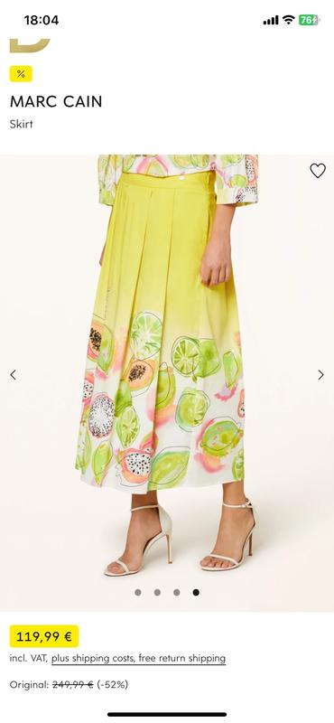 Яскрава, соковита літня спідниця від бренду MarcCain в абсолютно новому стані! Крой на защіпах спереду і позаду, має дві кишені та широкий пояс! Спідниця з костюма, жакета не було. 98% котону і еластан Розмір S-M По поясу 35, стегна 63, довжина 89 см