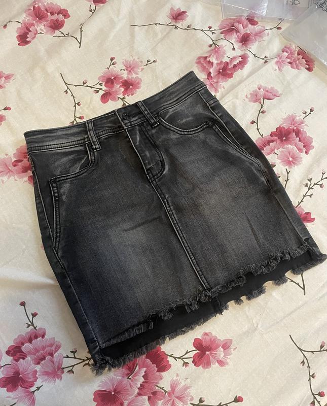 Джинсова спідниця, розмір S, стан ідеальний. Стрейчева, гарно тягнеться і сідає по фігурі. Колір - темно-сірий. Довжина - 38 см В поясі - 33 см Стегна - 39 см