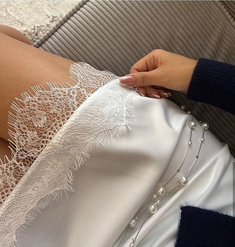 Жіноча коротка шовкова спідниця з мереживом на резинці