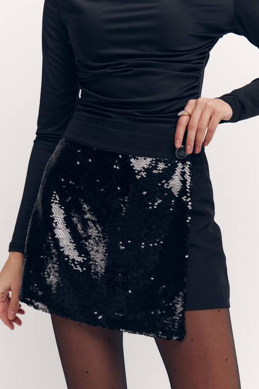 Шорти-спідниця Колір: чорний Размір: s,m,l Тканина: костюмна з пайеткою Лонг також у наявності