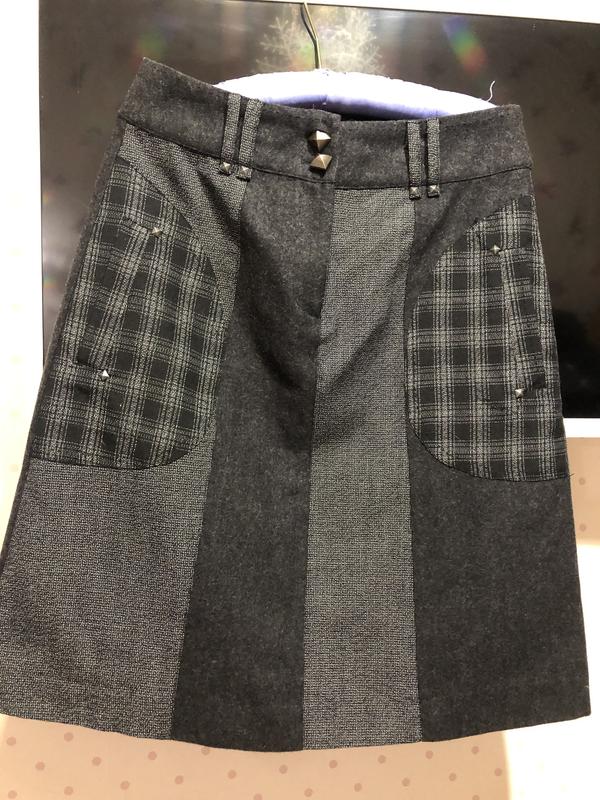 Теплая юбочка комбинированная ткань., спереди застежка молния, карманы. Бренд Fransa размер 34 Ориентируйтесь, пожалуйста, на замеры талия-37,5-38 Ширина низу -59 Боковой шов вместе с поясом-58 Ширина пояса-6 Бедра-51,5 Длина сзади по центральному шву-58 Высота застежки-11,5 Высота разреза карманов-13 см Комбинация из двух тканей Серая ткань-50% шерсть, 50-полиэстер Вторая ткань-65 полиэстер, 35-вискоза Юбка имеет подкладку При заявлении безопасной оплатой отправляю только Укр-бытой Приятных покупок и мира 🌺