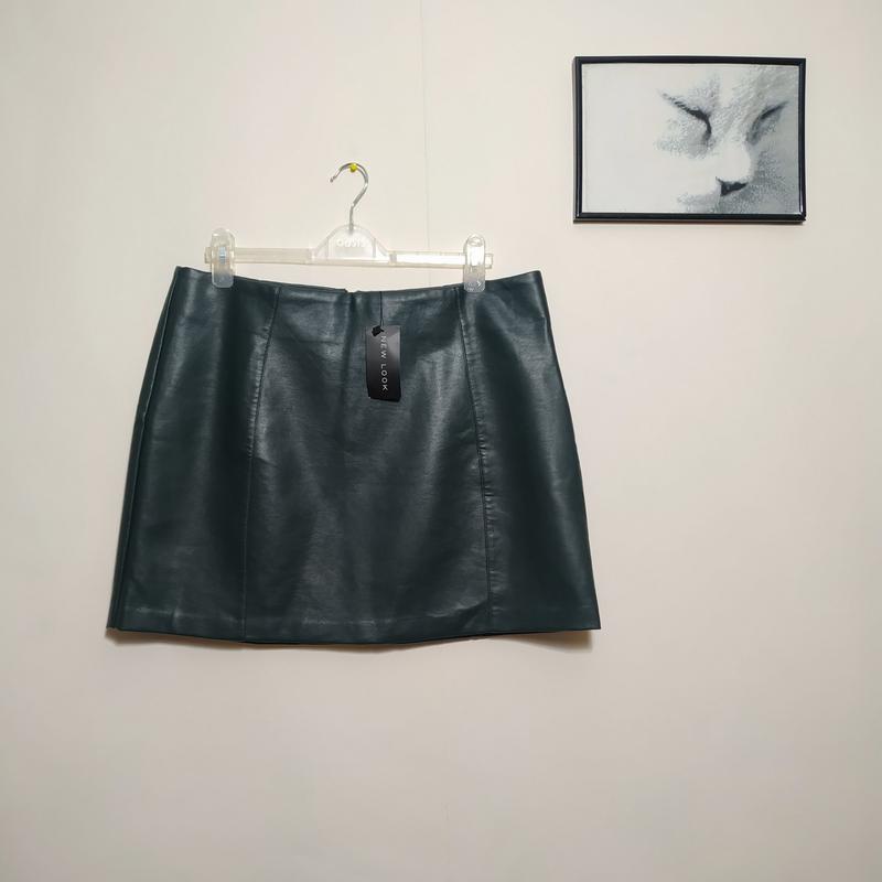 Новая кожаная темно-зеленая мини короткая юбка из экокожи, батал, большой размер, new look...