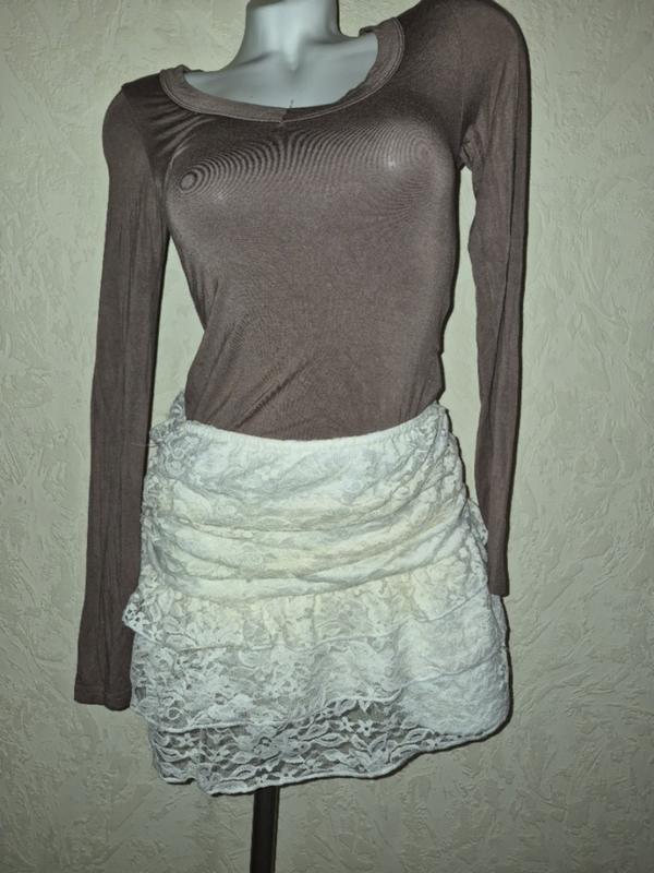 Кружевная мини юбка кремового цвета, подойдет на размер 44-46, замеры по желанию