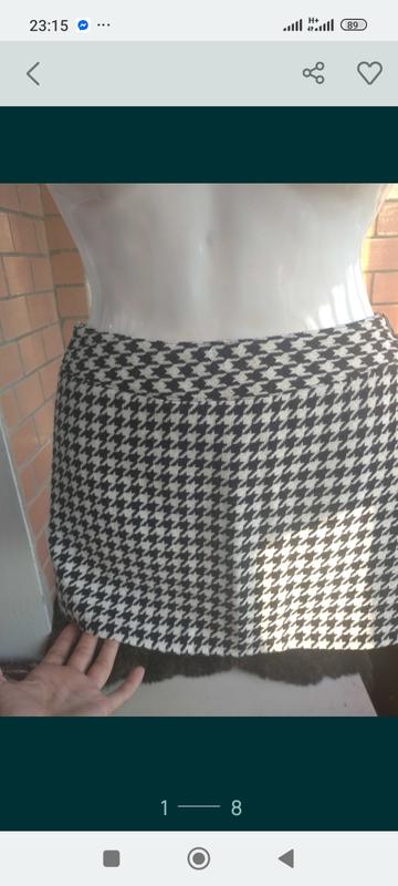 Короткая, теплая, мини юбка на подкладке, в трендовую, модную, гусиную лапку, размер S, 36 евро В составе ткани есть шерсть Состав ткани: 35% акрил,35% полиэстер, 20% шерсть,10% прочие волокна Производство Морокко Красивая модная расцветка, застегивается сбоку на пуговицу и молнию Замеры: ПОТ - 37см ПОБ - 43см по низа 48см Длина - 34см Ширина пояса - 5см Состояние новой вещи, идеальное