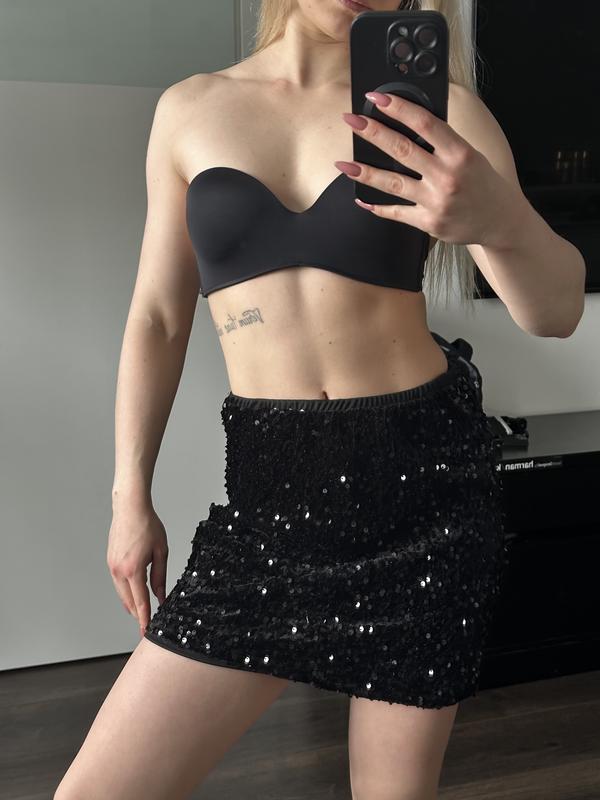 Розмір S (у мене xs, тому продаю, нова) Талія на резинці: 33 см Довжина: 39 см Ширина: 43 см