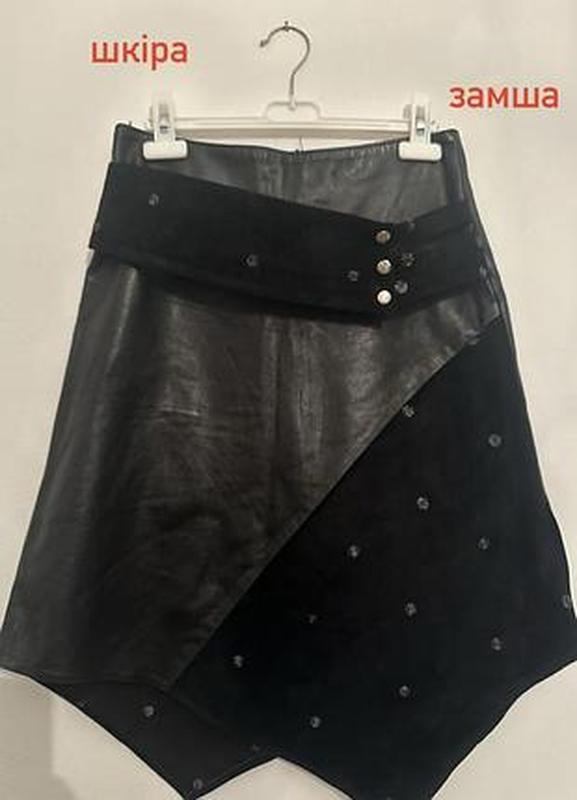 Изысканная кожаная юбка от французского бренда Azzaro с оригинальным дизайном. Особенности: • Сочетание натуральной кожи и тонкой замши • Асимметричный крой с декоративными металлическими кнопками • Черный цвет • Размер 36 • Состояние: без дефектов Параметры: • Длина более длинной стороны: 66 см • Длина более короткой стороны: 53 см • Пояс: 34-36 см • Бедра: 46-49 см Идеальный вариант для создания стильного образа с характером.