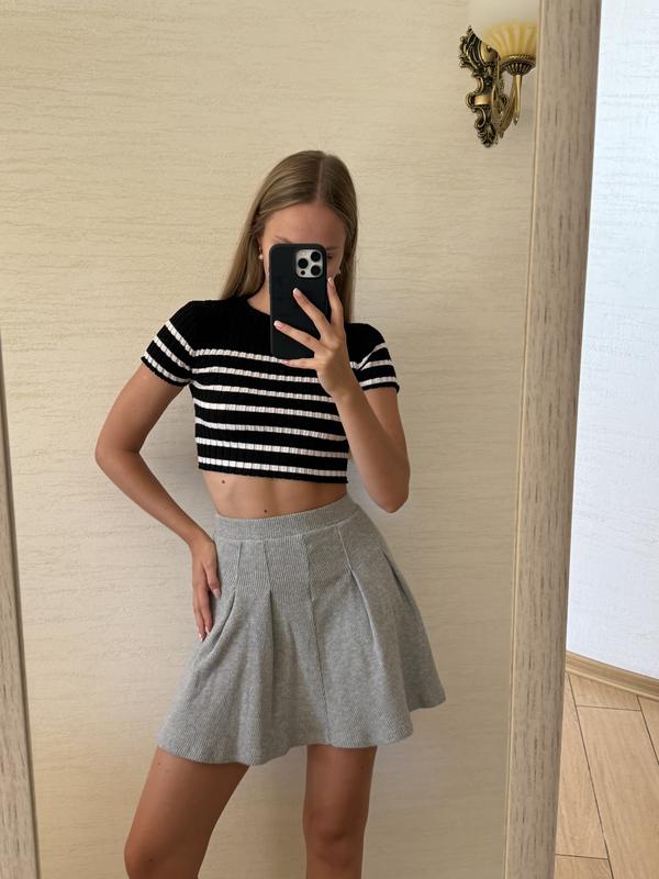 Сіра міні-спідниця з дуже приємною якості Нова, але без бірки Ні разу не носила На бірці 11-12 років дитяча зара, але по факту на дівчину xs🤍