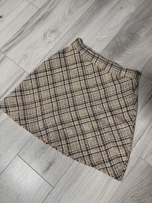 Твідова спідниця — елегантна та стильна, з виразною текстурою тканини.