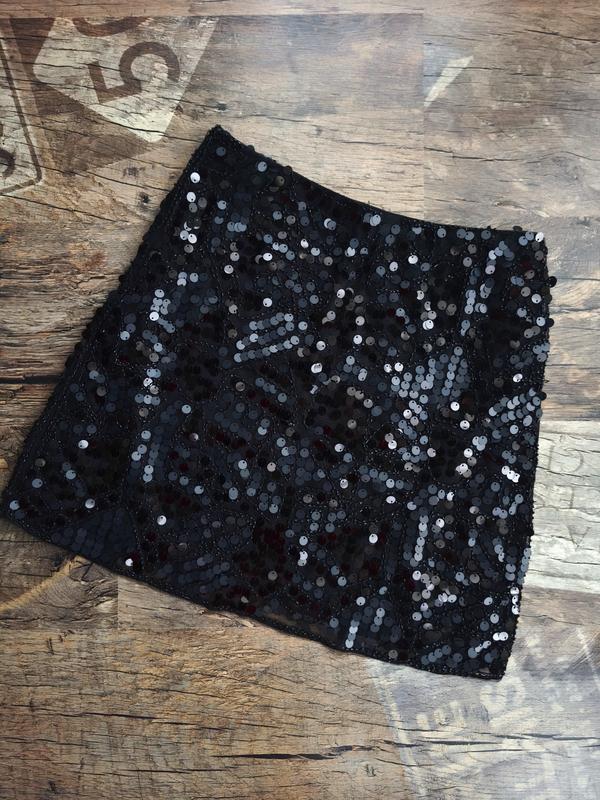 Очень красивая двухслойная вышитая пайетками и бисером мини юбка на подкладке. Пояс на резинке + замочек. Подкладка отлично тянется. Имеет быть свободна на бедрах. Размер не указан Длина 41, пояс 31/тянется до 38, талия 47/тянется